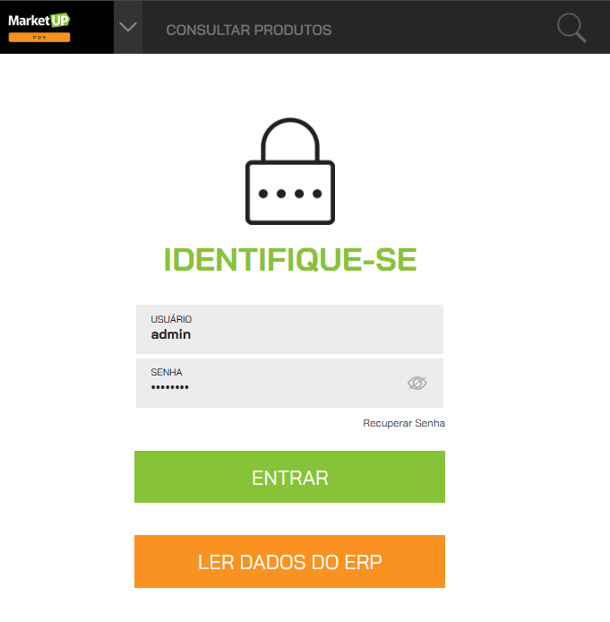 Para acessar o PDV, solicitamos que você preencha dois campos: