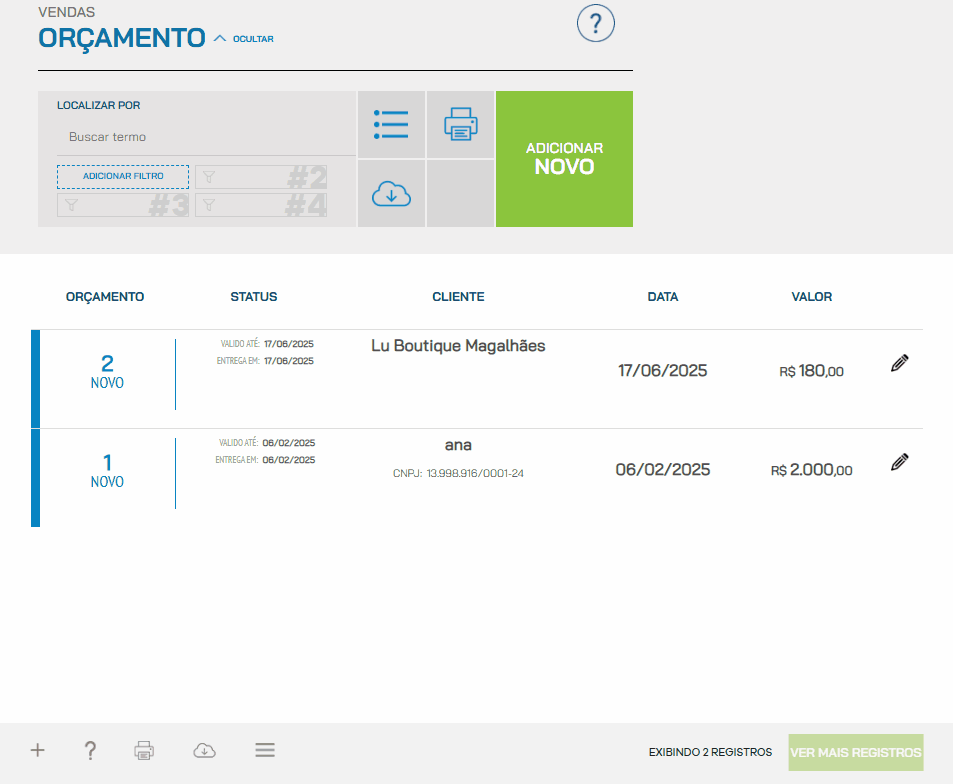 - Escolha o orçamento na lista ou utilize os filtros de busca;