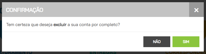 2. Em seguida um pop-up subirá em sua tela, pedindo a confirmação da Exclusão da Conta, caso queira prosseguir, clique em SIM.