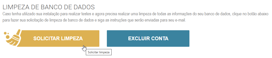 ATENÇÃO: Essa solicitação apaga TODOS os dados da instalação como vendas realizadas, notas emitidas, cadastro de produtos, registro de clientes e fornecedores. Essa limpeza passa por diversas autorizações e só é completada com todas essas autorizações recebidas. Ela só poderá ser solicitada por um usuário administrador, por isso cuidado com as permissões e somente solicite a limpeza quando for extremamente necessário.