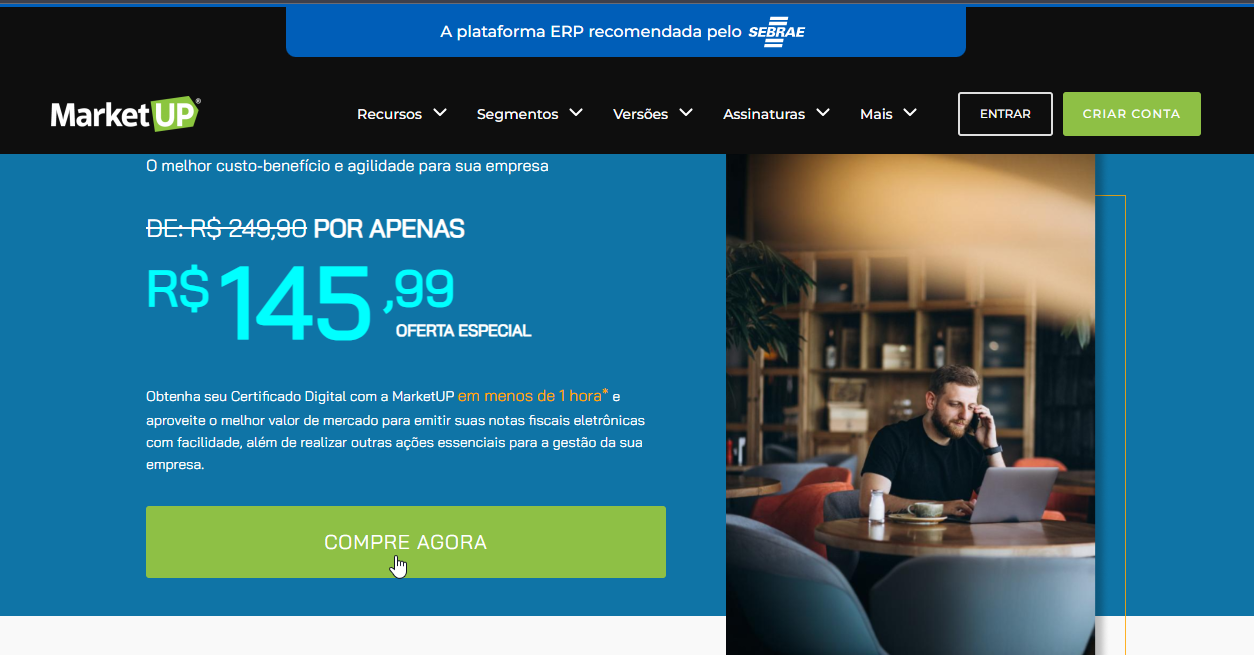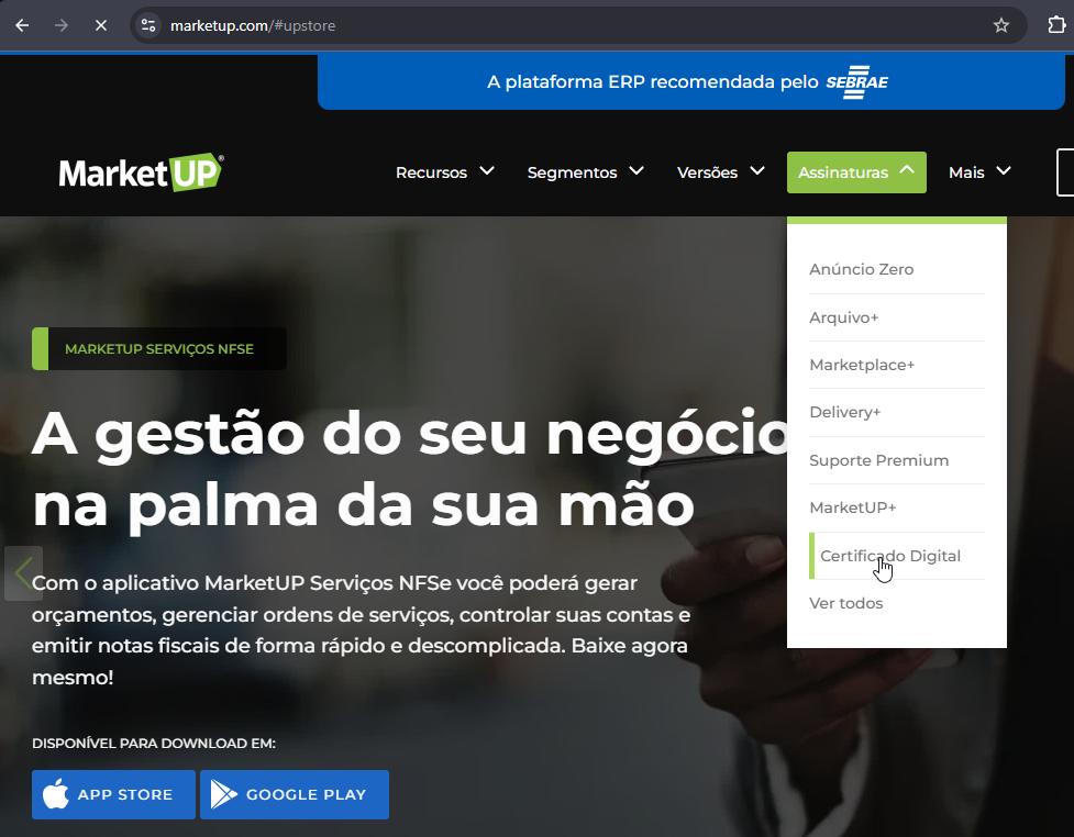 O caminho que verá para conseguir realizar a compra é em Assinaturas > Certificado Digital dentro do site da MarketUP.