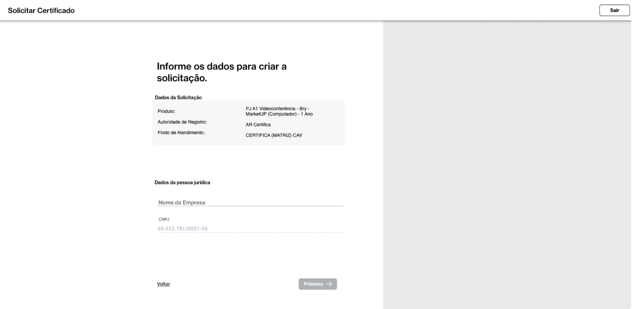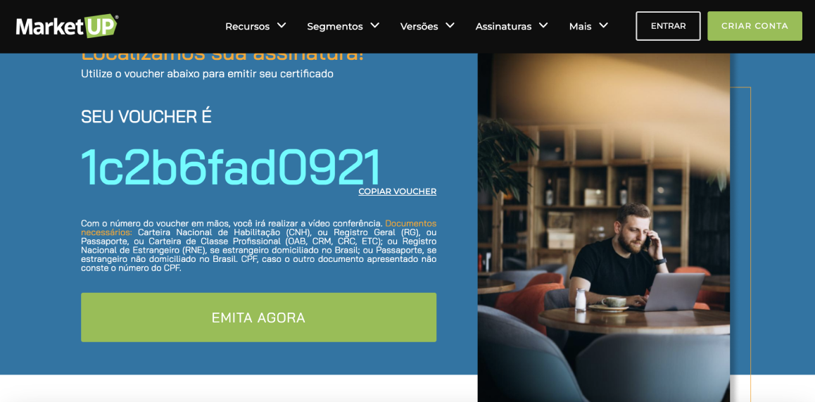 Com base no processo atual implementado pela MarketUP em parceria com a Bry Tecnologia, o fluxo de emissão de certificado digital segue as seguintes etapas: