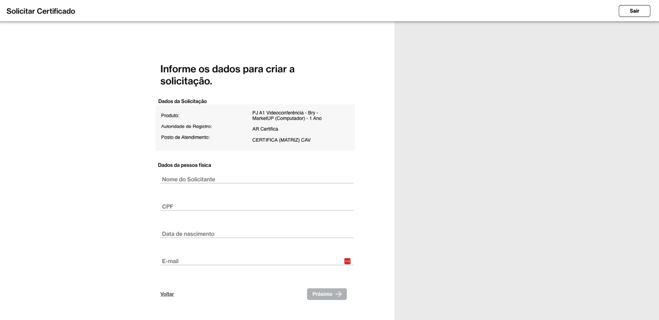 - Realize o preenchimento completo de todos os dados pessoais/empresariais necessários na tela seguinte;