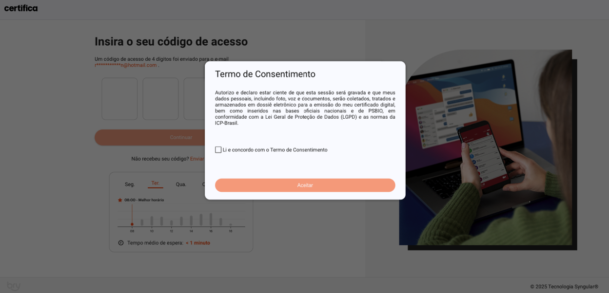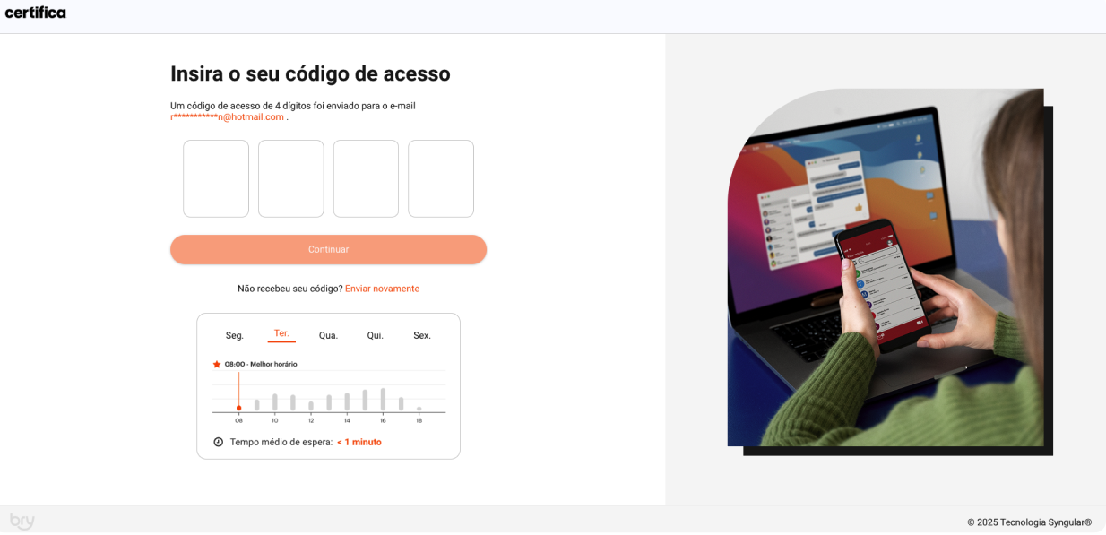 - Tempo de espera pode variar conforme demanda da certificaodra no dia.
