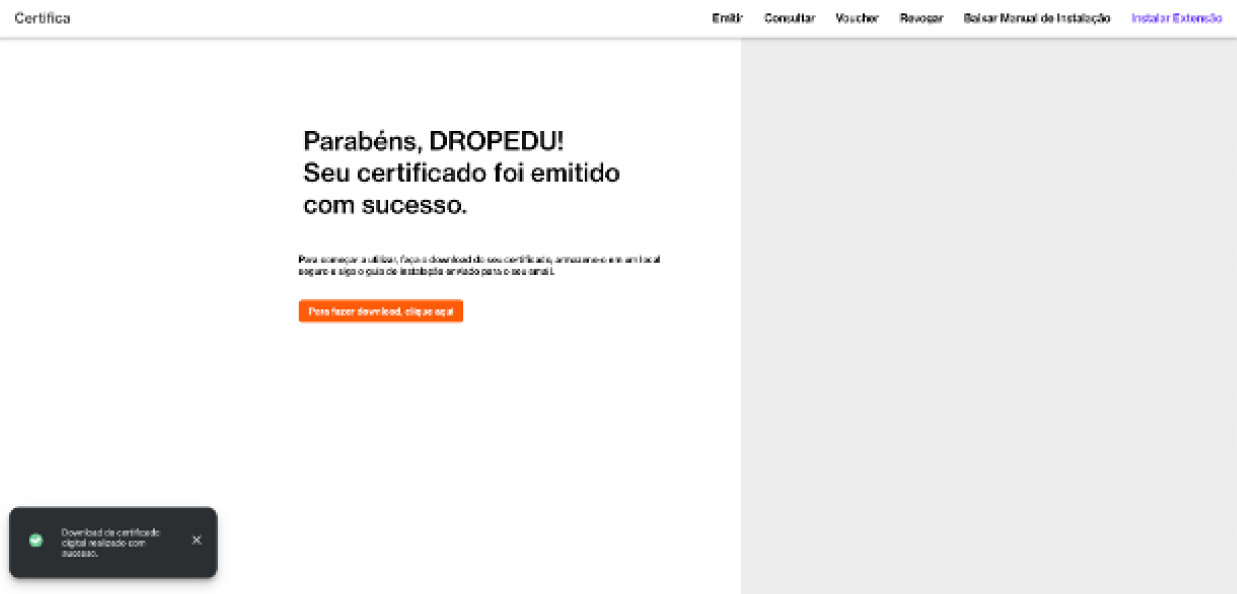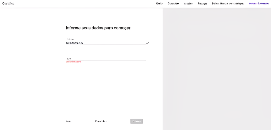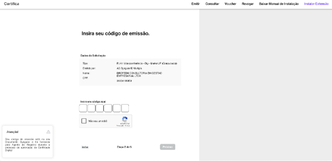 Código de emissão é necessário para completar a aquisição do Certificado Digital