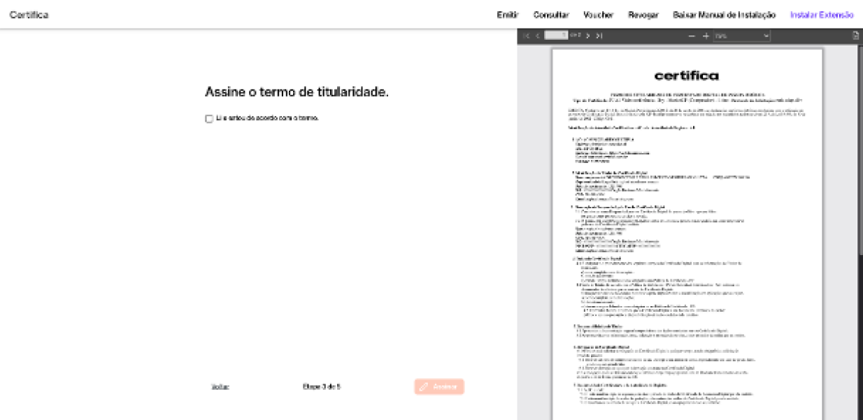 Conseguindo acessar o campo do Certificado Digital no site conseguirá realizar a compra:
