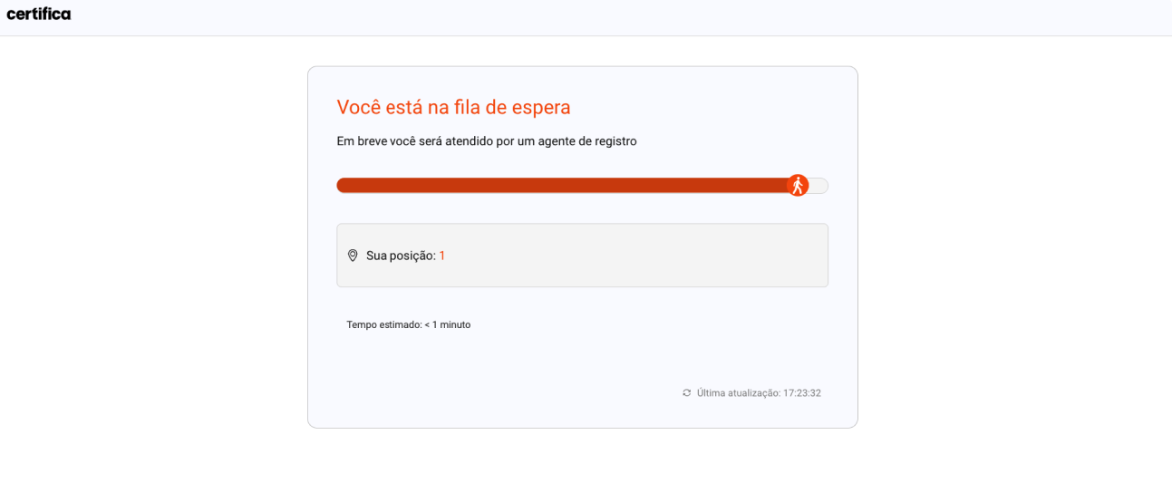 - Entre na fila de espera para video conferêrencia com Agente de Registro;