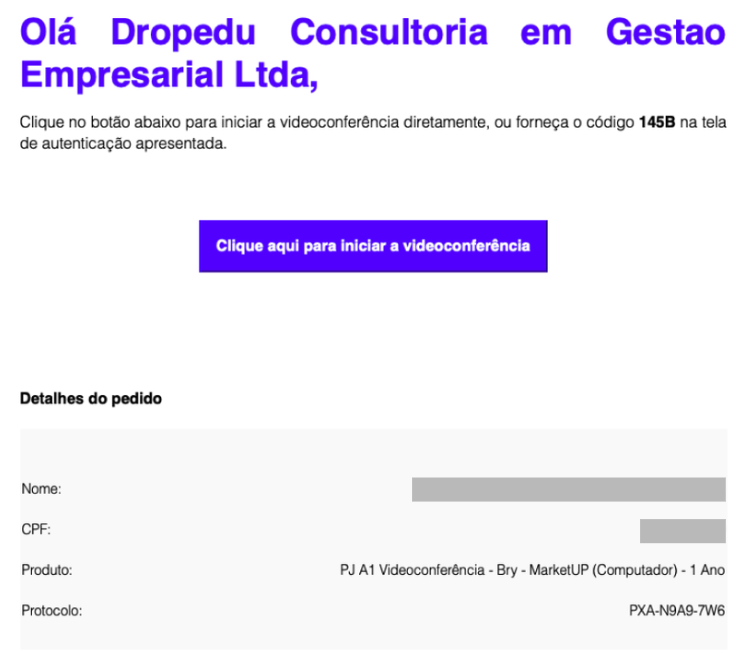 - Token de acesso para videoconferência é enviado para o e-mail cadastrado;