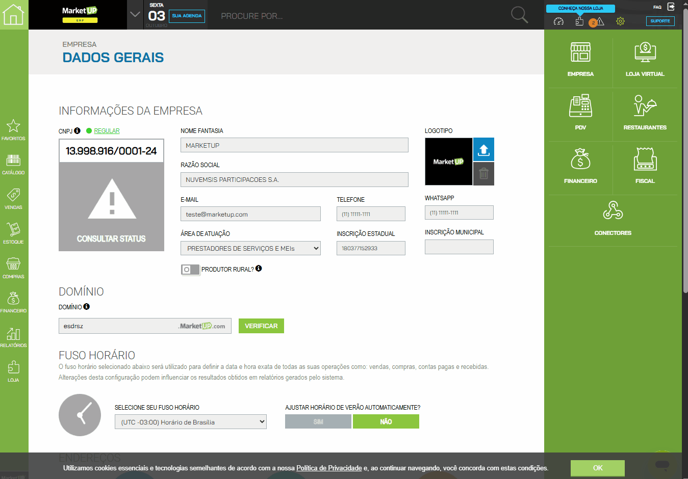 Para editar o CNPJ informado no sistema acesse: CONFIGURAÇÕES > EMPRESA > DADOS GERAIS.