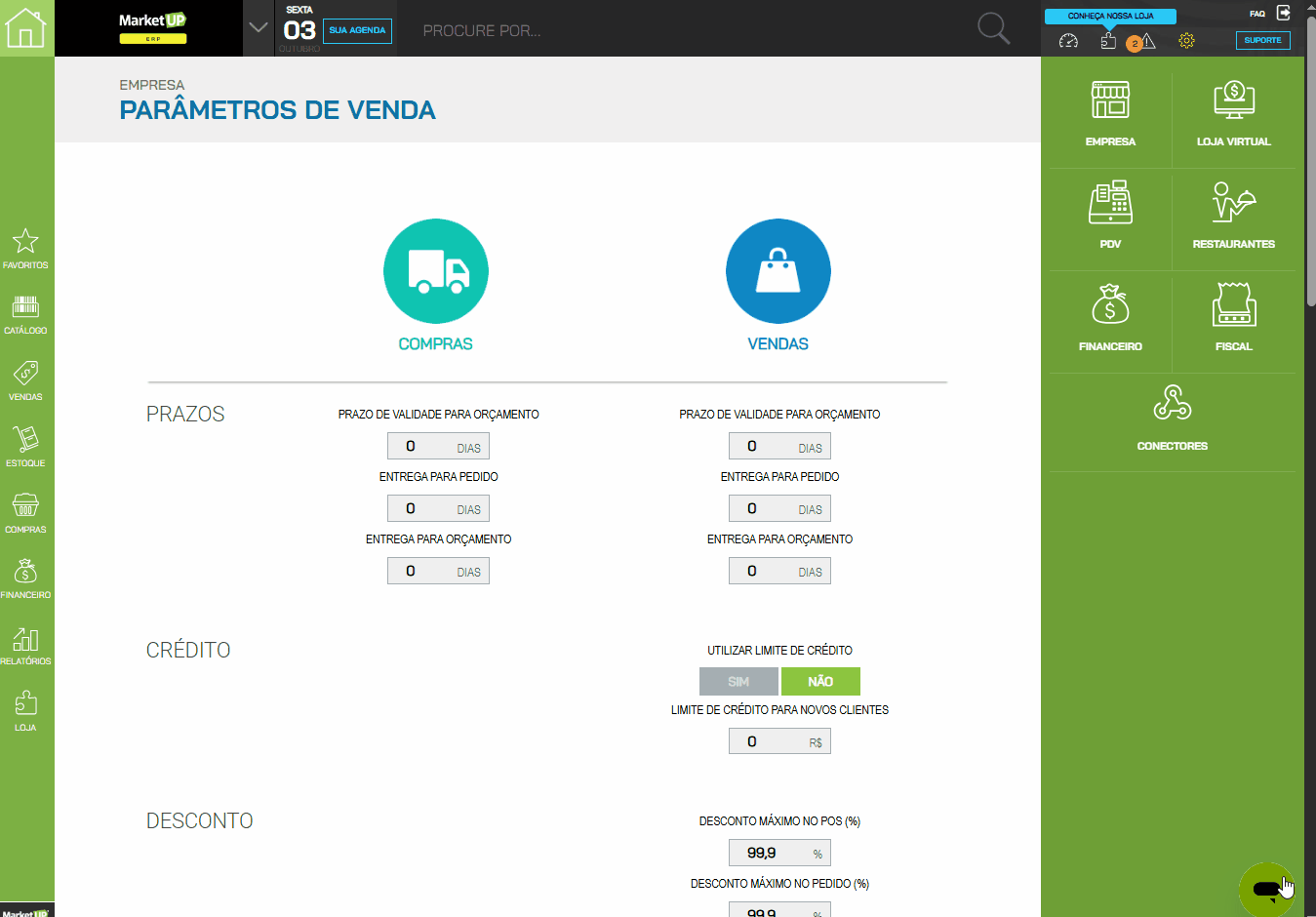 - Altere a opção de UTILIZAR LIMITE DE CRÉDITO para SIM;